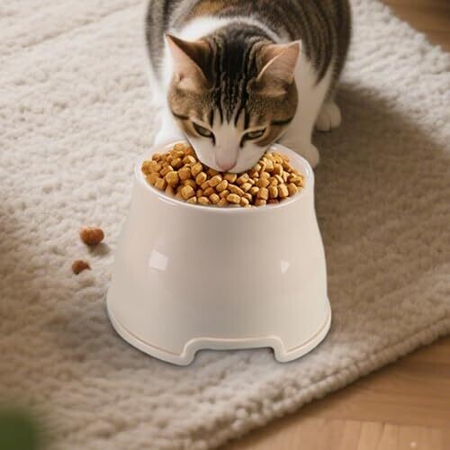 Ergonomically raised design aims to ease shoulder, neck, and spine burden and promote digestion, accommodating dry kibble, wet food, treats, and water.