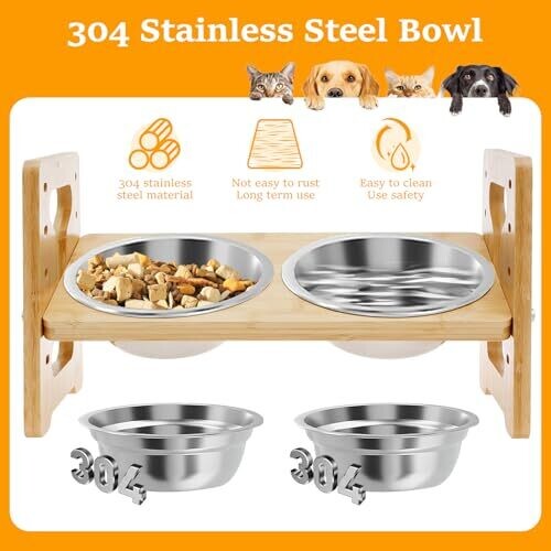 • Raised Dog Bowl Stand with Five Heights 2–7.7In, Includes 2 Stainless Steel Bowls and Anti-Slip Feet
