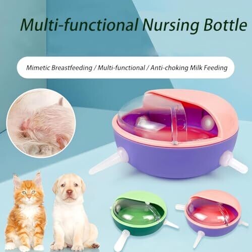 - Includes a lid and multiple nipples for versatile use across different pets and feeding stages.