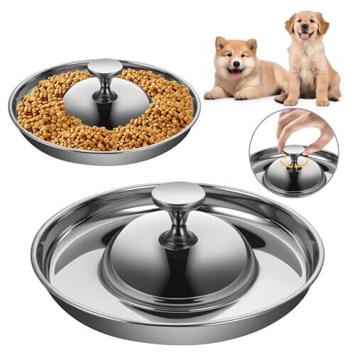 Puppy weaning bowl set, 2-pack stainless steel slow feeder bowls for food and water.