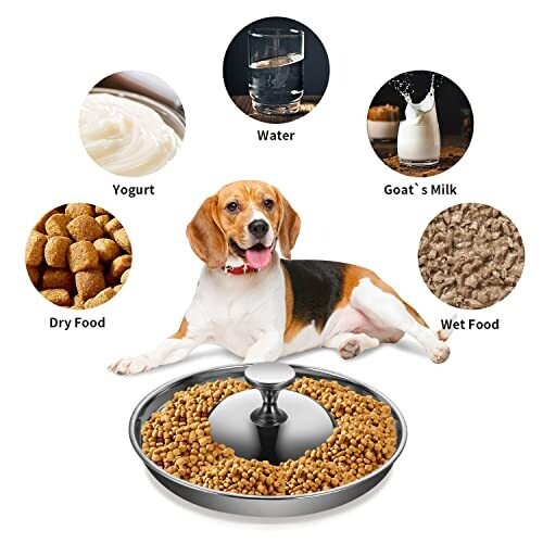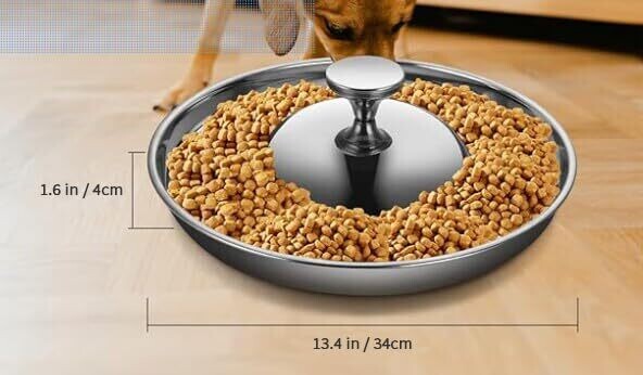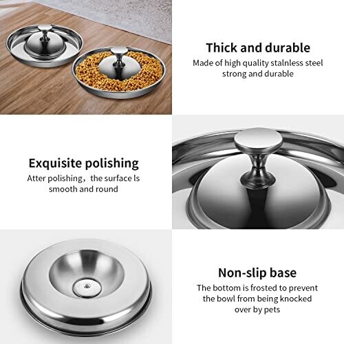 This two-pack set keeps multiple pets eating together with ease. Durable stainless steel with a smooth edge for gentle licking, has an elevated inner contour and bottom handle for easy serving, stackable for a tidy feeding area, dishwasher safe.