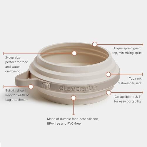 • Cleverpup Nomad Collapsible Dog Bowl - 2 Cup Food-Safe Silicone Bowl - Sand