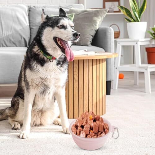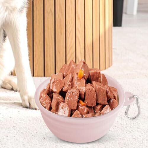 Travel-ready foldable silicone bowl with a secure buckle for on-the-go meals. Lightweight and durable, it serves as a water or food bowl for pets of all sizes, easy to clean, and helps with portion control during outdoor adventures.