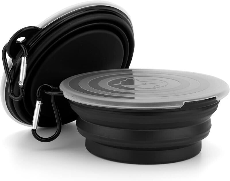 Travel-friendly silicone feeding and watering bowls with lids and carabiners that go wherever your pet adventures take you. Collapsible and lightweight for easy packing, with lids to keep food and water clean between uses and carabiner for hands-free portability.